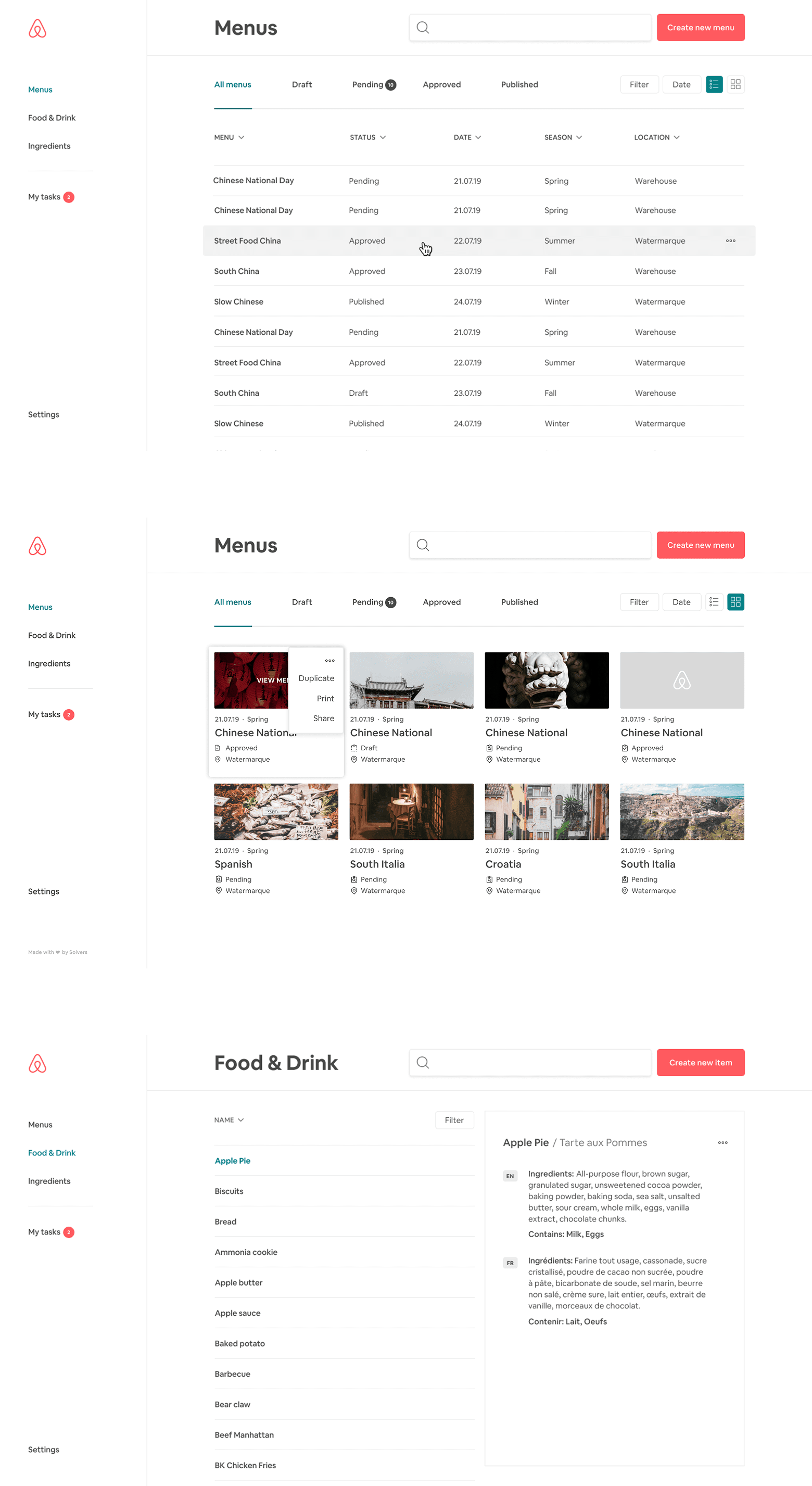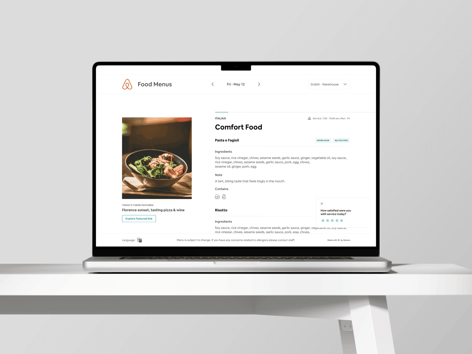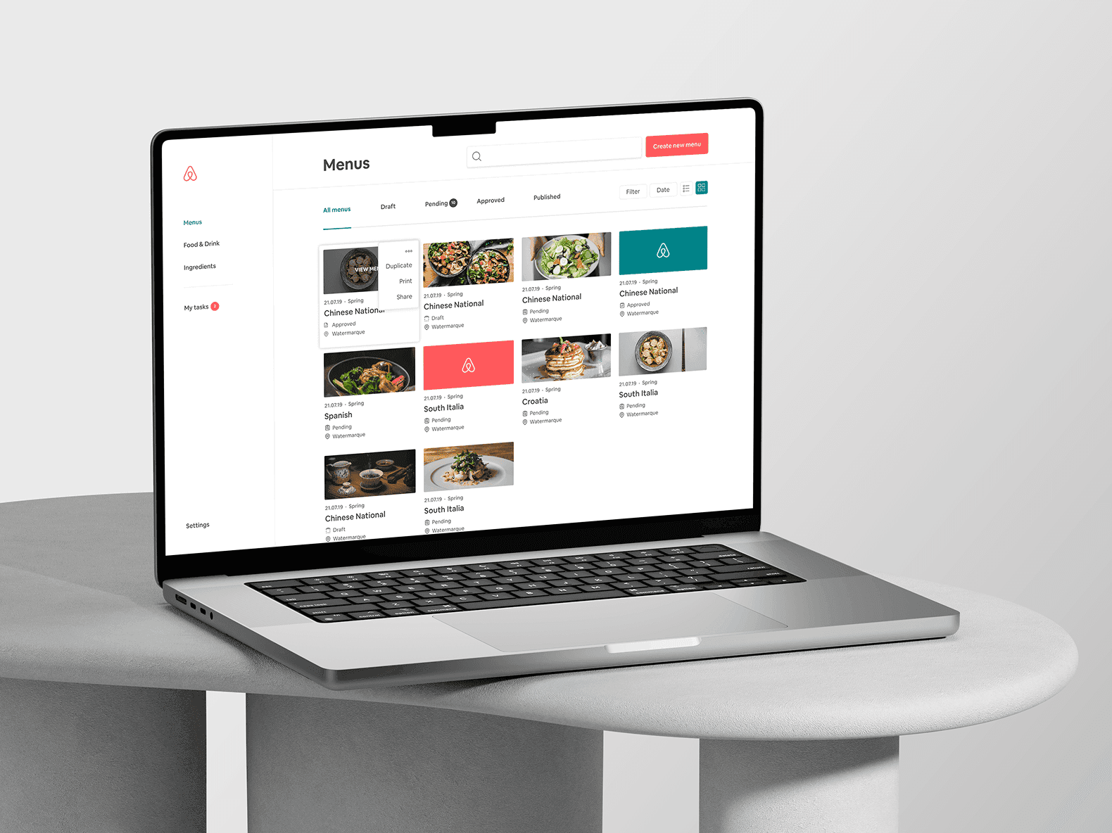 Working with the Dublin Airbnb team, I transformed a complex, multi-role workflow into a clear and intuitive web app—allowing chefs and managers to manage menus and recipes centrally, while employees easily explore upcoming meal options. The result is a scalable, design-driven system that simplifies operations and delivers a consistent global dining experience.