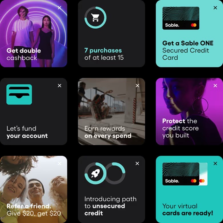 The new Sable app is the primary way users can see their credit progress, make adjustments, and feel empowered to reach their credit goals. By applying the new Sable brand identity to a mobile app, I extended its practicality into all of the UX use cases necessary to deliver seamless credit building and acquire an engaged return user base.