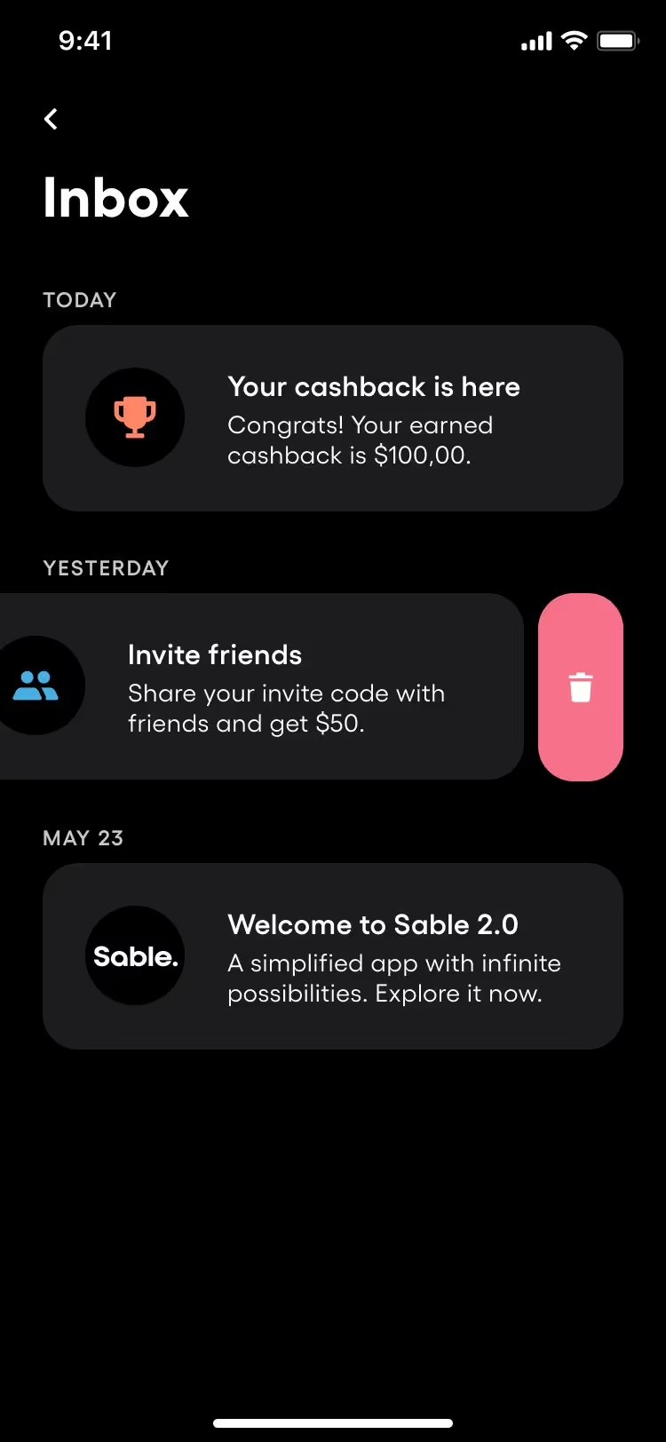 Along with my design of the core Sable brand identity and website, I also redesigned the Sable app. As a platform for access to financial independence, allowing people to start with secured credit and build their financial health with just a passport or visa, Sable is all about putting power in the hands of underbanked people.