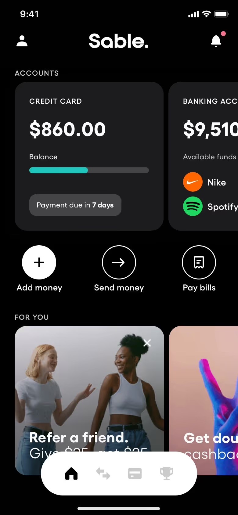 Through thorough user research and usability testing, the Sable app became the home base for users to access their credit score, receive offers, and work toward unsecured credit in a clear, design-forward environment.