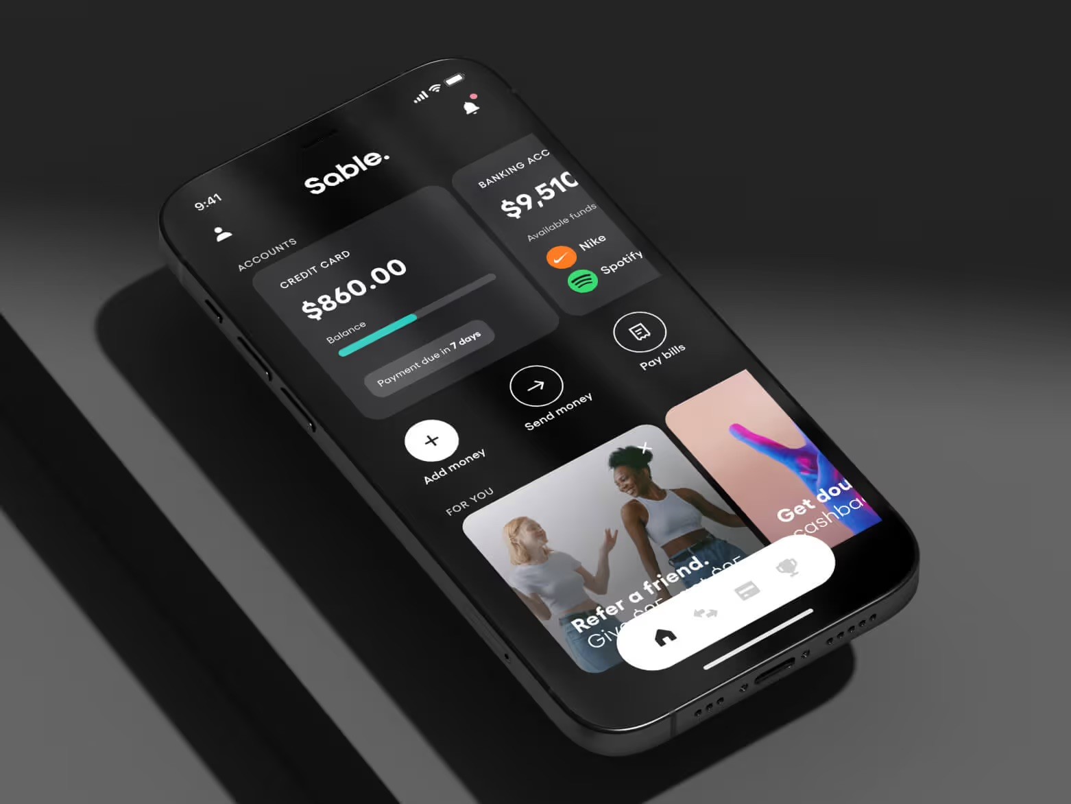 We developed Sable’s core logotype, color palette, typography, photography direction, credit card designs and more, with user research and testing informing our decisions throughout.