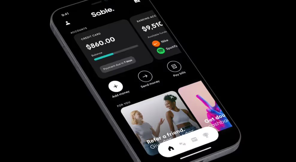 Sable needed a new brand identity that better reflected its nature as a modern, tech-forward brand, so we developed a system that could seamlessly flex across marketing and product. Rooted in cool tones, friendly typography, and fluid lines, the new Sable brand illustrates its mission of making personal finance accessible to underbanked people everywhere.