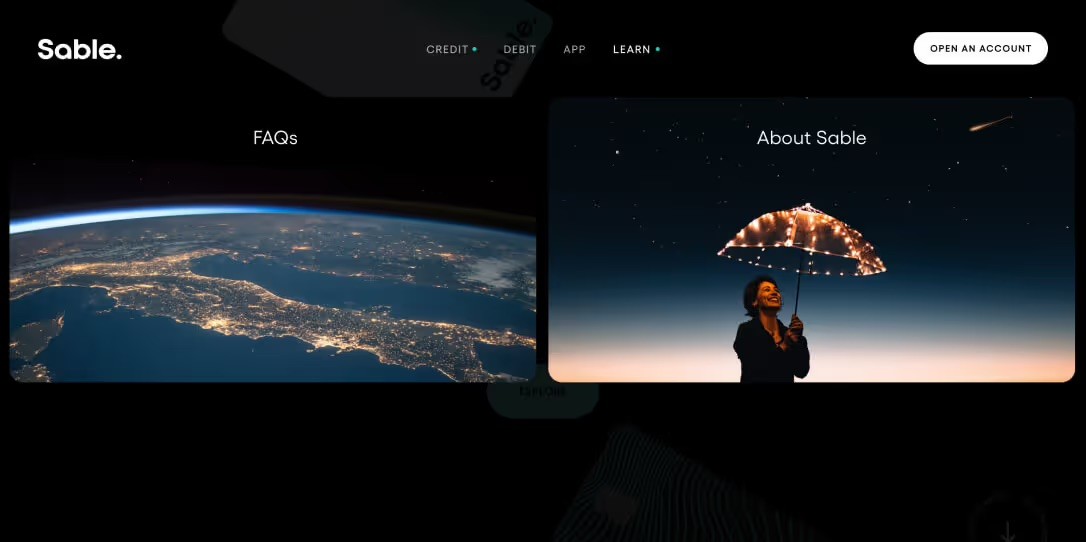 The redesigned Sable website needed to explain the problem of traditional credit, apply our updated Sable brand identity in flexible digital design, and drive acquisition for the platform. The result achieved all three of those goals: The new Sable website is a durable design product that educates and engages visitors, driving them to sign up and download, along with drawing attention from investors and the press by casting Sable’s vision to create a more integrated financial world.