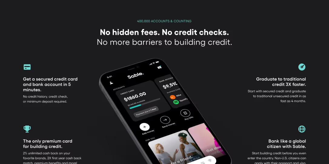 It’s not just another neobank. Sable makes credit accessible to everyone. In as fast as five minutes, anyone, regardless of citizenship, can start building their credit profile in the U.S. and reaching their goals.